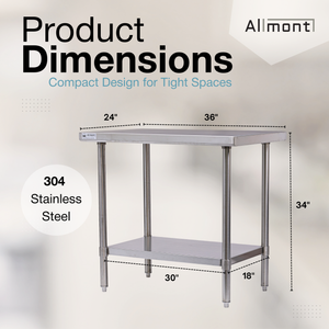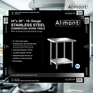 Allmont 24" x 36" 16 Gauge Stainless Steel Work Table with SS Undershelf and Legs
