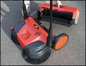 The BG497 offers large-path sweeping efficiency in a manual, triple-brush configuration for expansive areas needing regular debris collection.
