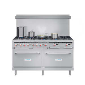 Koolmore KM-CRGB60-LP 60" W Stainless Steel 6 Burners with 24" Griddle, Broiler and 2 Ovens Liquid Propane Commercial Range