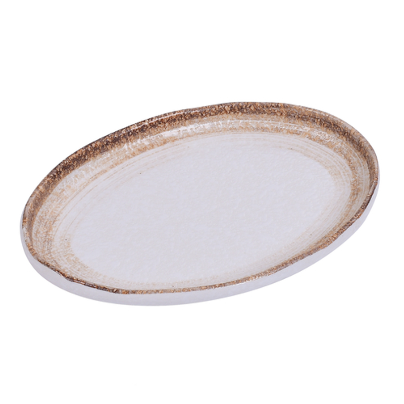 Yanco RO-2314 14" L x 9.25" W White or Brown Glazed Porcelain Oval Rockeye-2 Platter